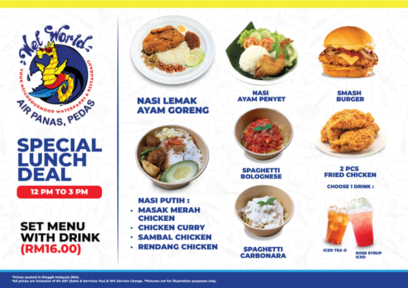 To complete your visit, a variety of delicious food options are available on-site, including nasi lemak, hotpot, corndogs, waffles, and burgers, perfect for refuelling after hours of fun.